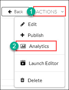 To view aggregated and individual quiz results, go to MyMedia and select the quiz to go to its page. Below the video preview, click the Actions button and select Analytics.