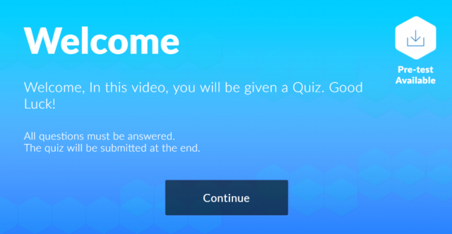 Click on the Eye icon below to the right of the player window. You will see the quiz Welcome screen.