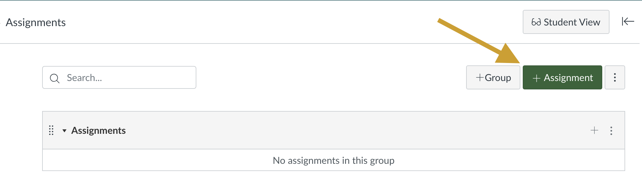 Open the Assignments tool in your Canvas course and Click + Assignment