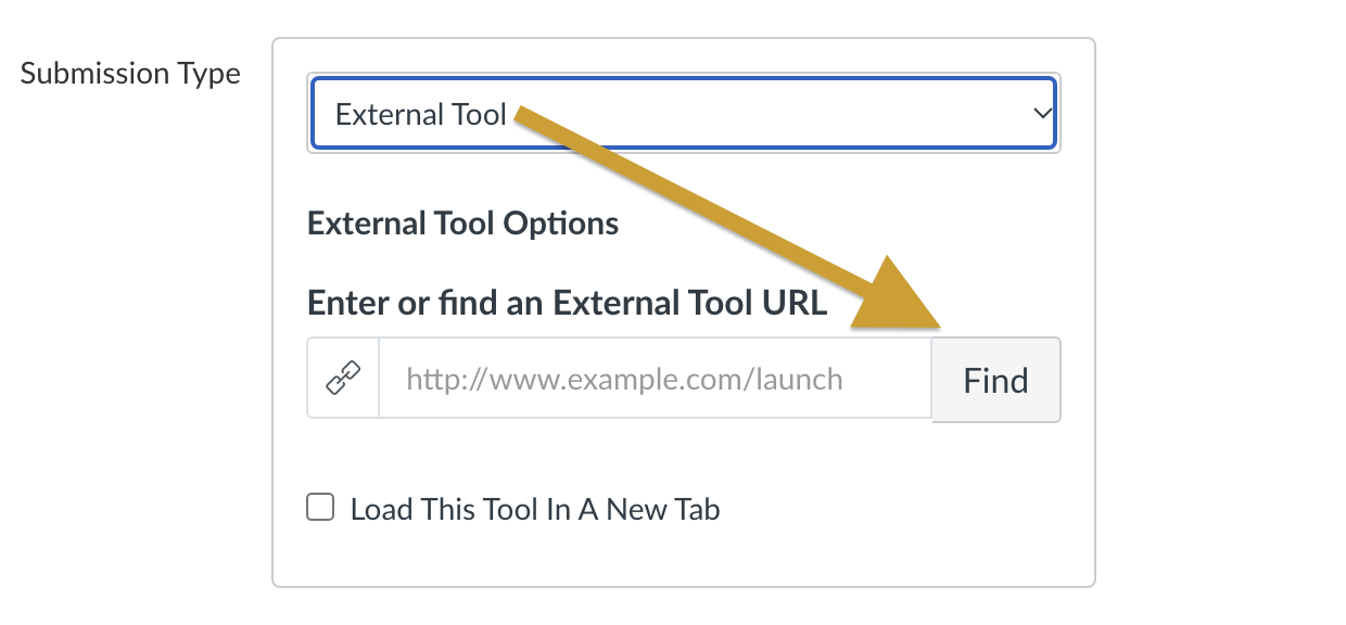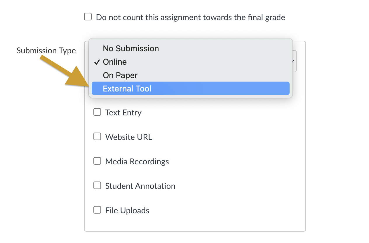 Choose External Tool from the Submission Type drop-down