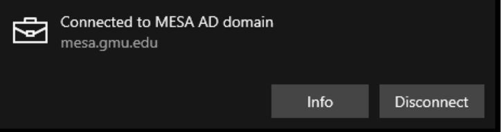Click Connected to MESA AD domain then click Info.