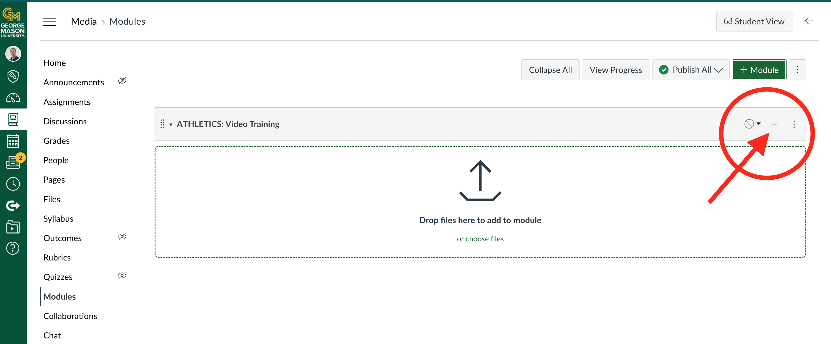 In Canvas you can add video and audio via Kaltura in a course using Pages, directly to a Module, or anywhere the content editor is available (e.g., announcements, discussion board, assignment submission, etc.).