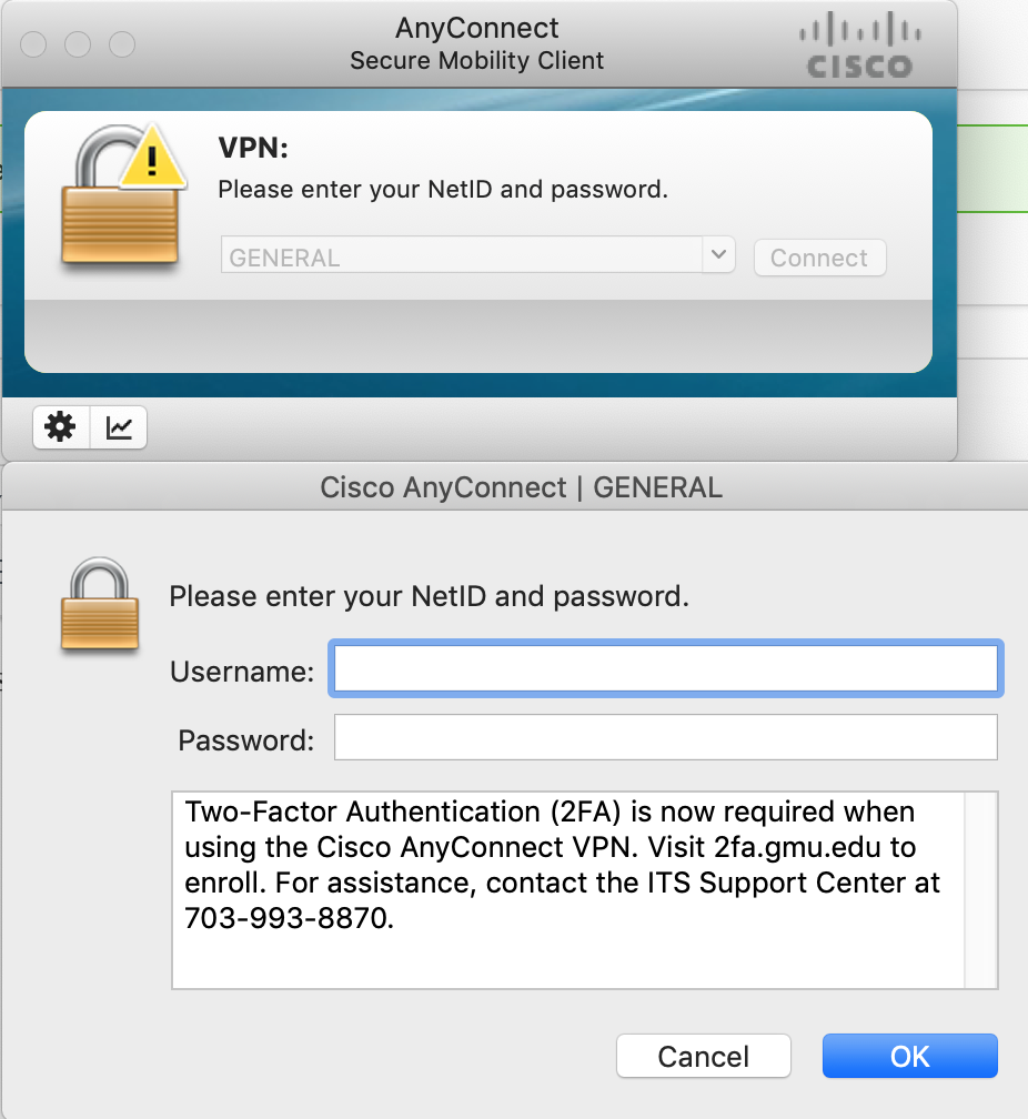 Enter your Mason NetID (Note: NetID only; do not include @gmu.edu or @masonlive.gmu.edu) and Patriot Pass Password and click OK.