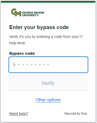 In the “Passcode” field, enter the bypass code you were given and click Log In.