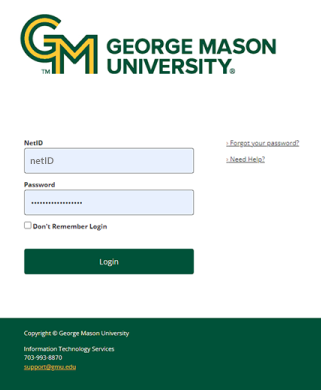 In the application’s login window, enter your NetID and Patriot Pass Password.