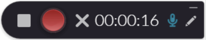 - Annotations (pencil icon): Opens drawing tools for screen recordings. You can draw on the screen or use the whiteboard. Click the pencil again to return to cursor mode. (Note: Annotations are available only when recording your screen, not webcam-only recordings.)