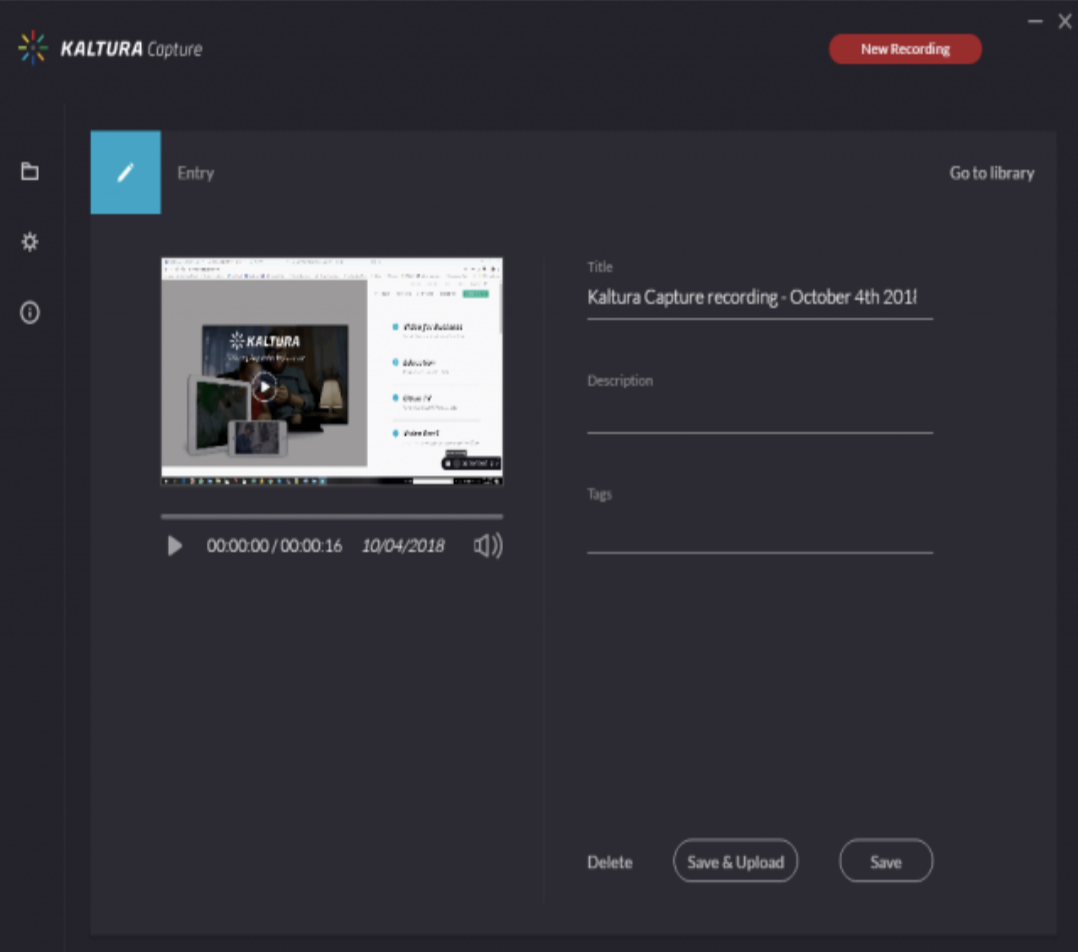 When you stop a recording in Kaltura Capture, you’ll be taken to the Capture Library.
