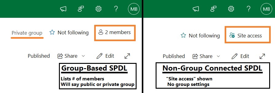 - “Microsoft 365 Group” is a Group-Based SPDL