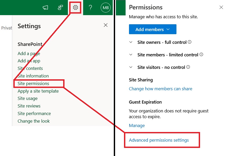 - In the top-right corner of the web page, it will either say the number of Members or Site Access.