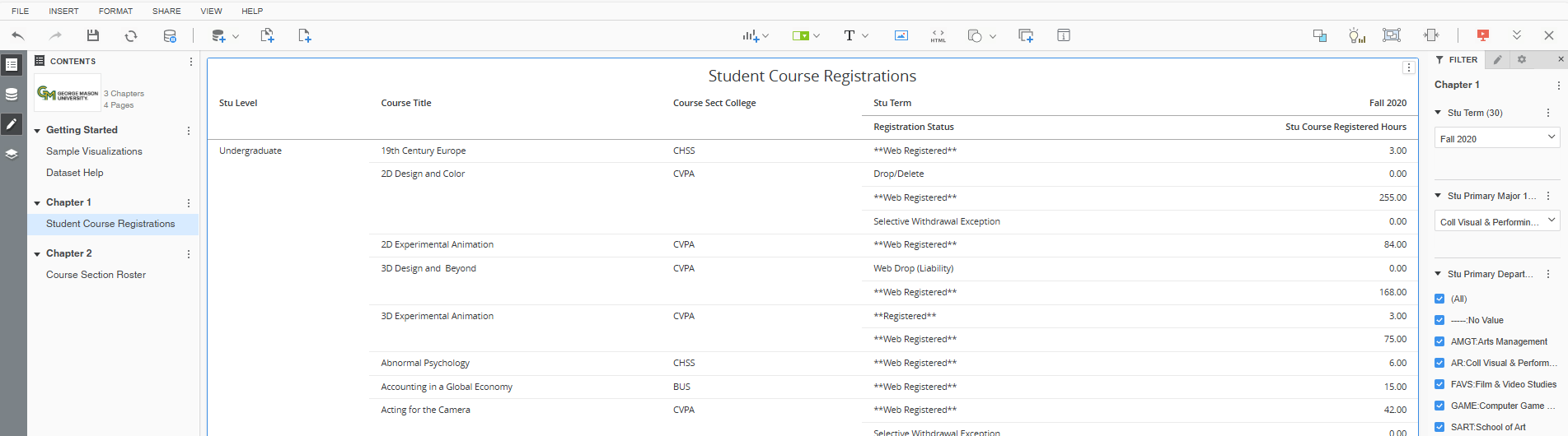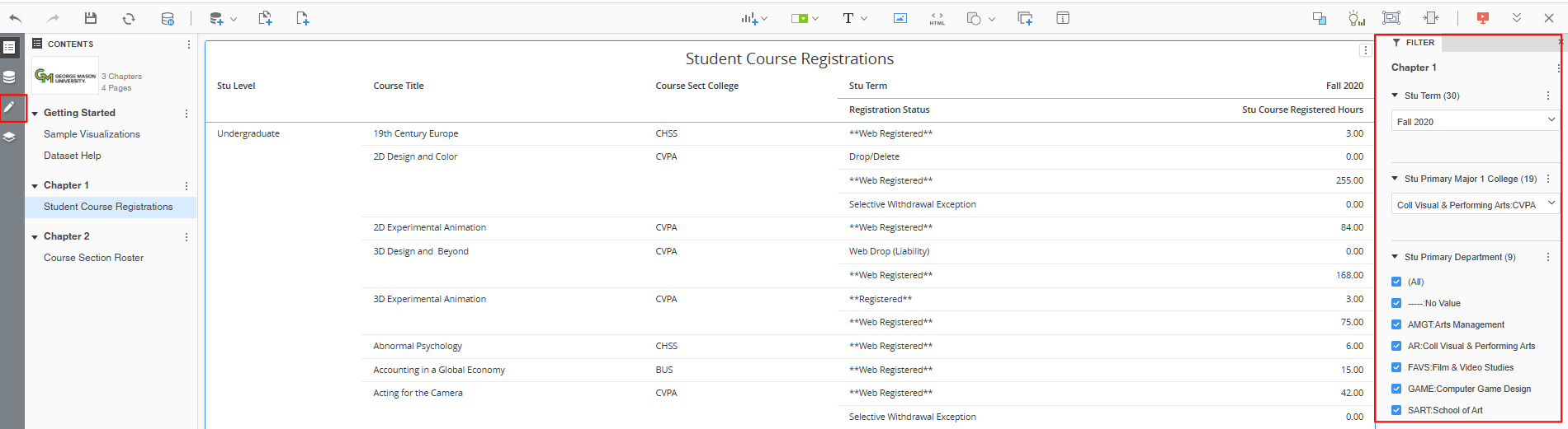 - However, instead of appearing on the far-right side of the screen (the default location), the panels will now be on the left side of the report visualization area.