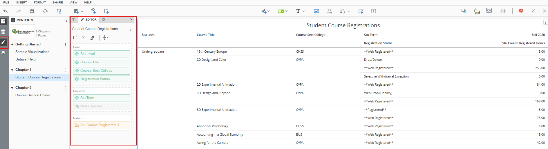 - Clicking the Editor Panel icon again will close all three panels – Filter, Editor, and Format – and the icon will return to its unshaded state, signaling that the panels are no longer in use.